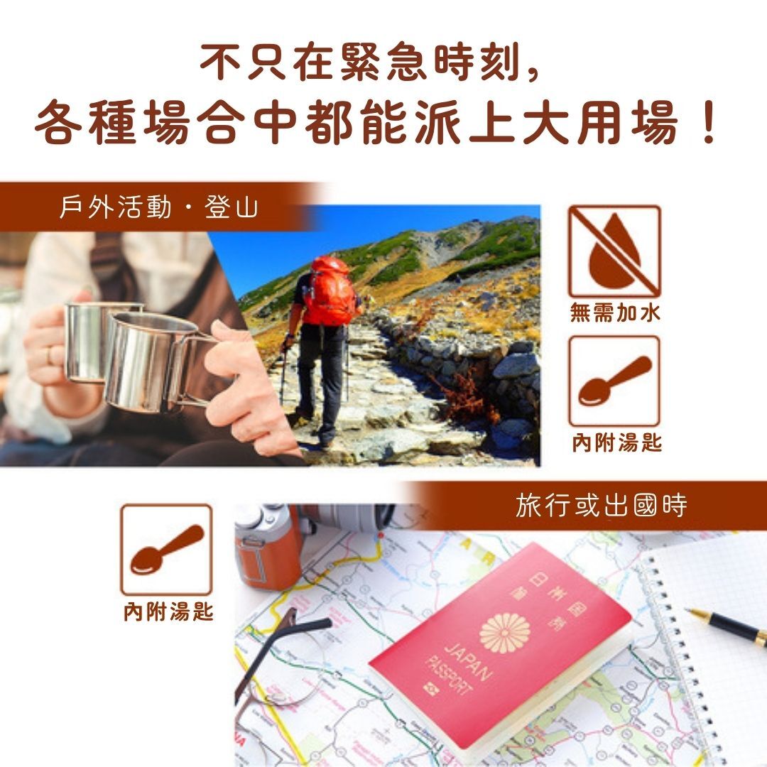 無論是戶外活動、登山露營,還是防災日常儲備使用,都能快速補充能量!