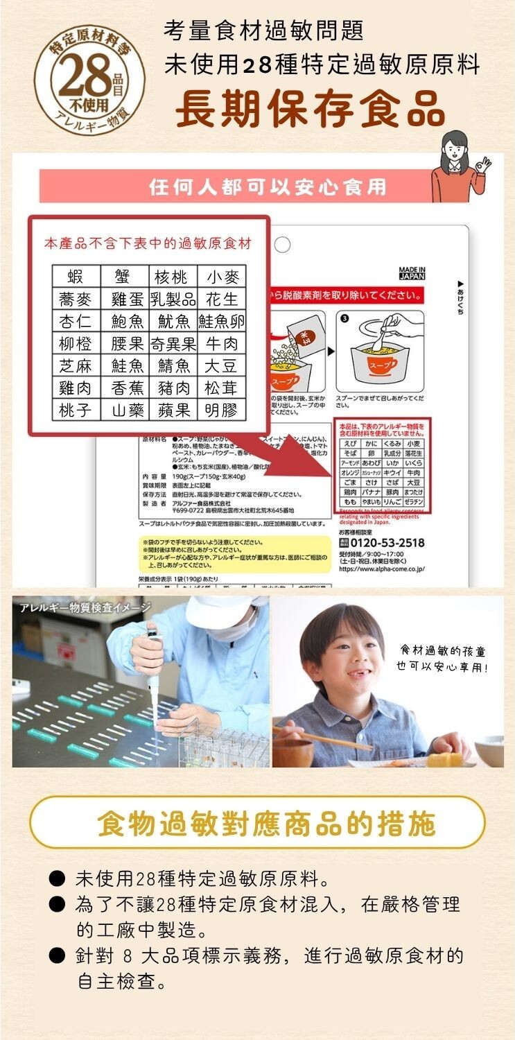 輕盈柔軟口感的快食飯——這是一款不含28種特定過敏原成分、適合食物過敏者的長期保存食品。