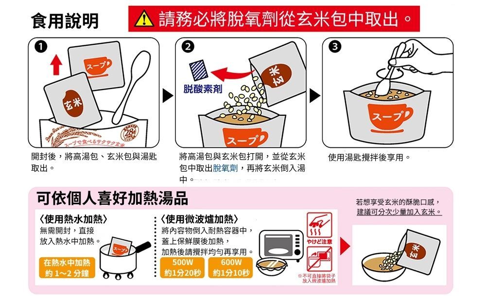 只需將玄米加入湯中攪拌,即可輕鬆享受營養又安心的一餐。