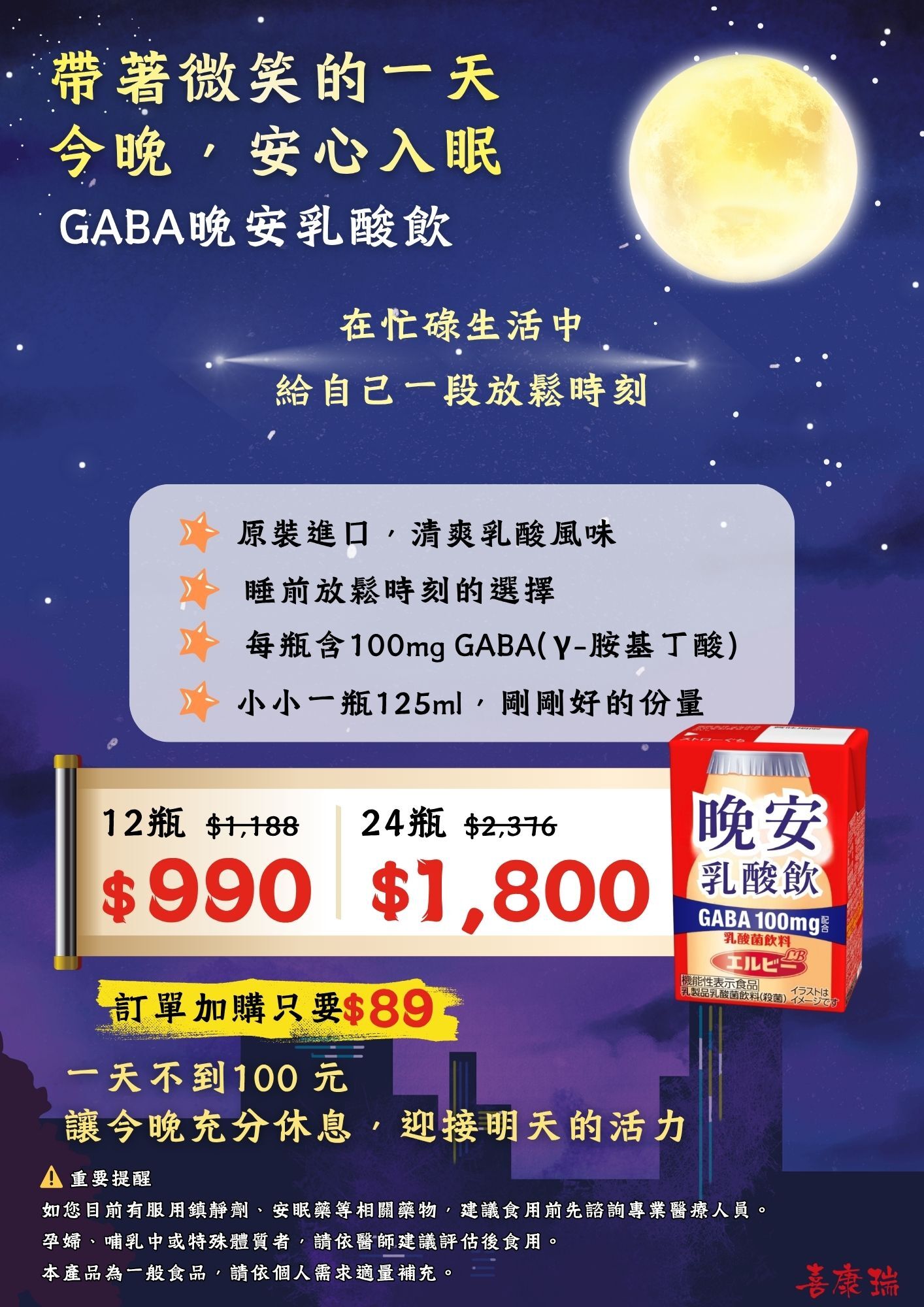 本產品為乳酸菌飲料,每瓶含 100mg GABA,